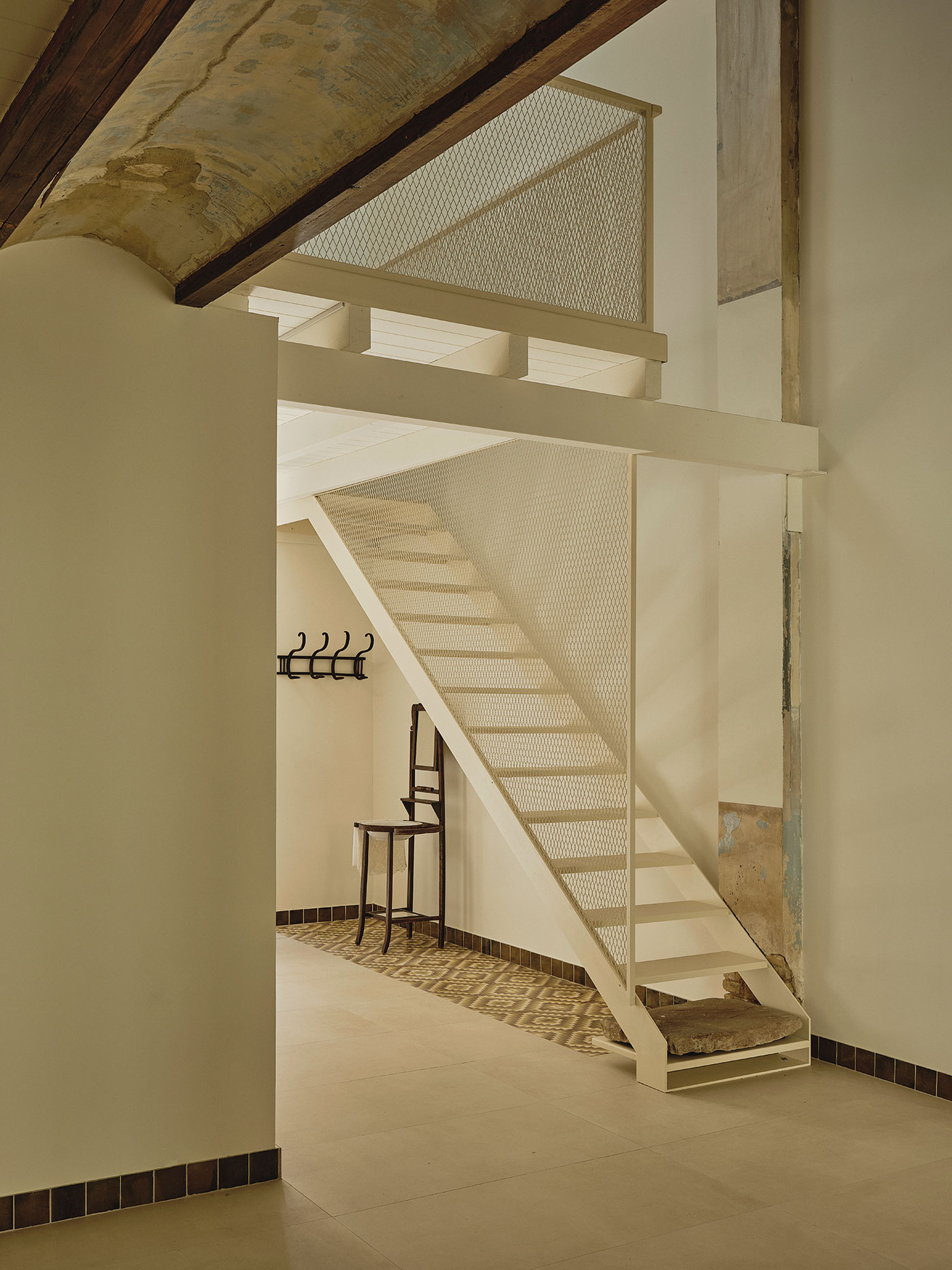 En la Casa dels Estels, esto nos llevó a eliminar la pallissa, cuyas condiciones materiales no garantizaban su conservación. También se decidió derribar un volumen anexo al edificio principal, que contenía el único baño de la casa, un cuerpo que interrumpía la relación natural entre la zona de día y el patio, construido con materiales pobres y soluciones efímeras.
