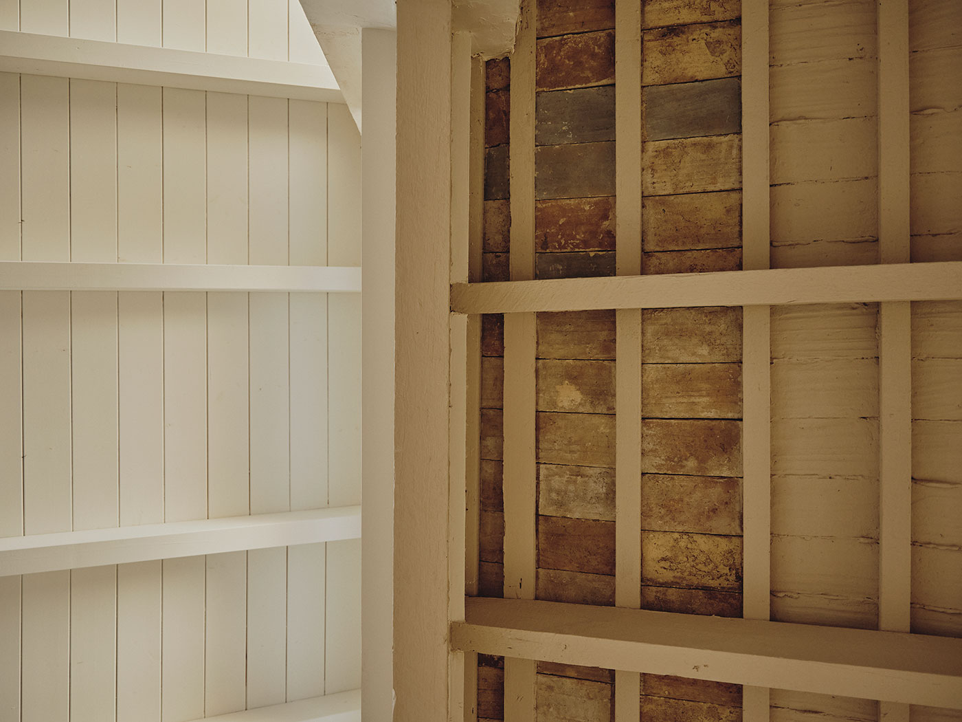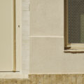 Los materiales adquieren un protagonismo inigualable en esta intervención con una clara estrategia, devolver la esencia de la casa aportando un nuevo valor contemporáneo. Las nuevas aportaciones constructivas dialogan con el lenguaje vernáculo: vigas de madera y tableros estructurales que, diferenciándose de los revoltones antiguos, mantienen una continuidad formal y material. Esta voluntad de diálogo se extiende también a los materiales y los acabados. Se busca una coherencia profunda con el entorno, con técnicas de la arquitectura vernácula y criterios de responsabilidad ambiental y sociocultural. Así, se recuperan morteros de cal, cerámicas, madera y ladrillos de barro del derribo. Estas últimas piezas de barro, extraídas de la cubierta desmontada, configuran ahora el pavimento del patio y el pasillo, creando una auténtica alfombra histórica donde los dedos de los artesanos que las fabricaron un siglo atrás dejan una huella visible en la textura.