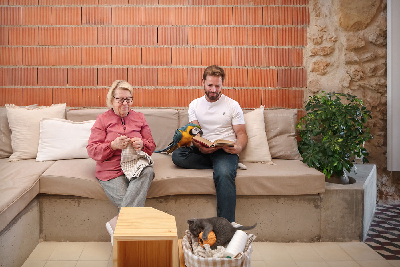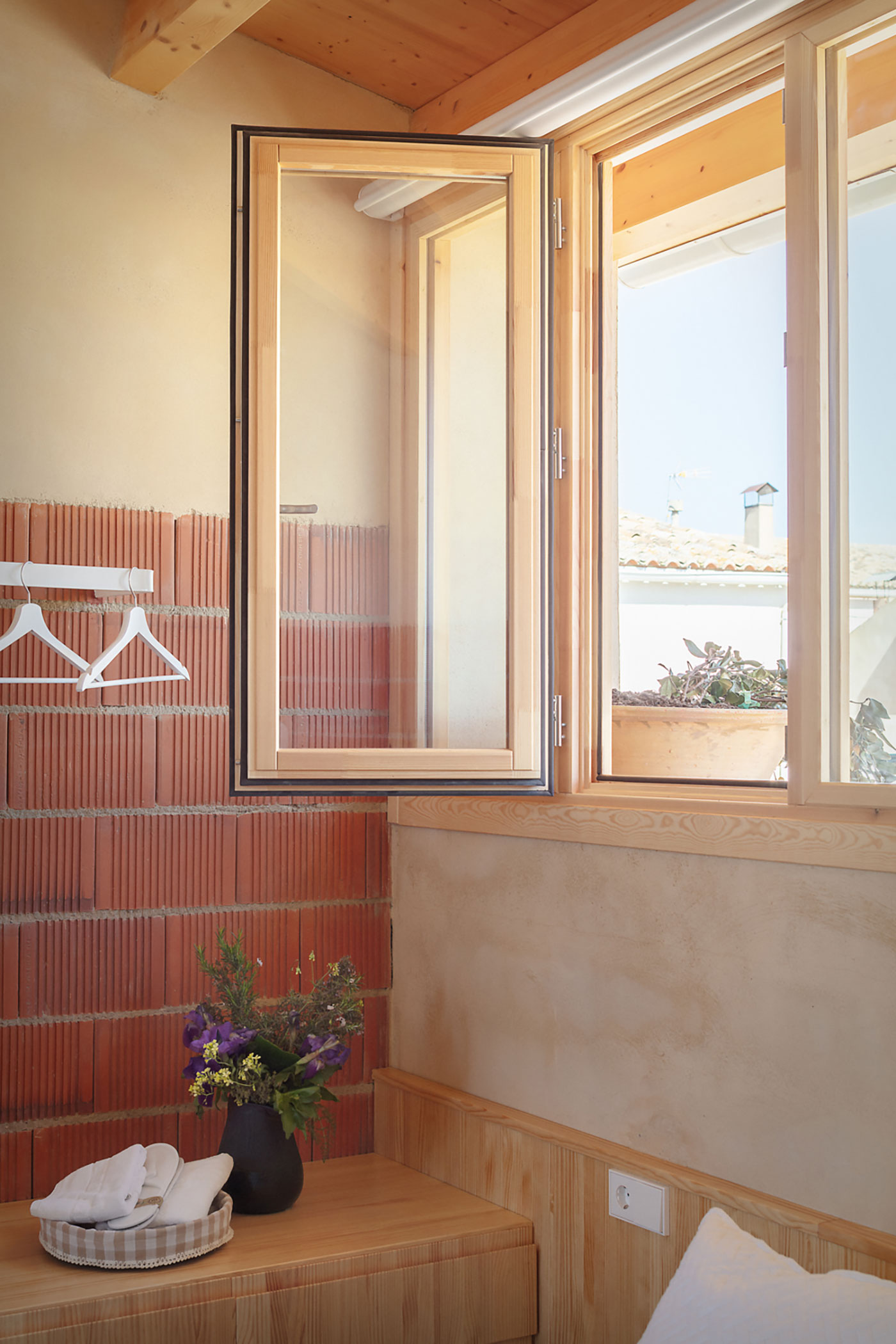 Cada textura añade una capa de tiempo y uso; en esa suma se reconocen las genealogías del entorno y se lee, a la vez, la historia del lugar y la posibilidad de un futuro. También se incorporan piezas diseñadas a medida (por ejemplo, taburetes modulares, una mesa trapezoidal, o un sofá cama) pequeñas ingenierías domésticas que refuerzan la continuidad entre arquitectura, oficio y lugar.