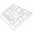 La distribución se organiza mediante una serie de volúmenes o ‘cubos’ conectados entre sí, generando un recorrido perimetral continuo. No hay pasillos residuales; la vivienda se recorre como una secuencia fluida de estancias que orbitan alrededor del patio, convirtiendo el tránsito en una experiencia en sí misma.