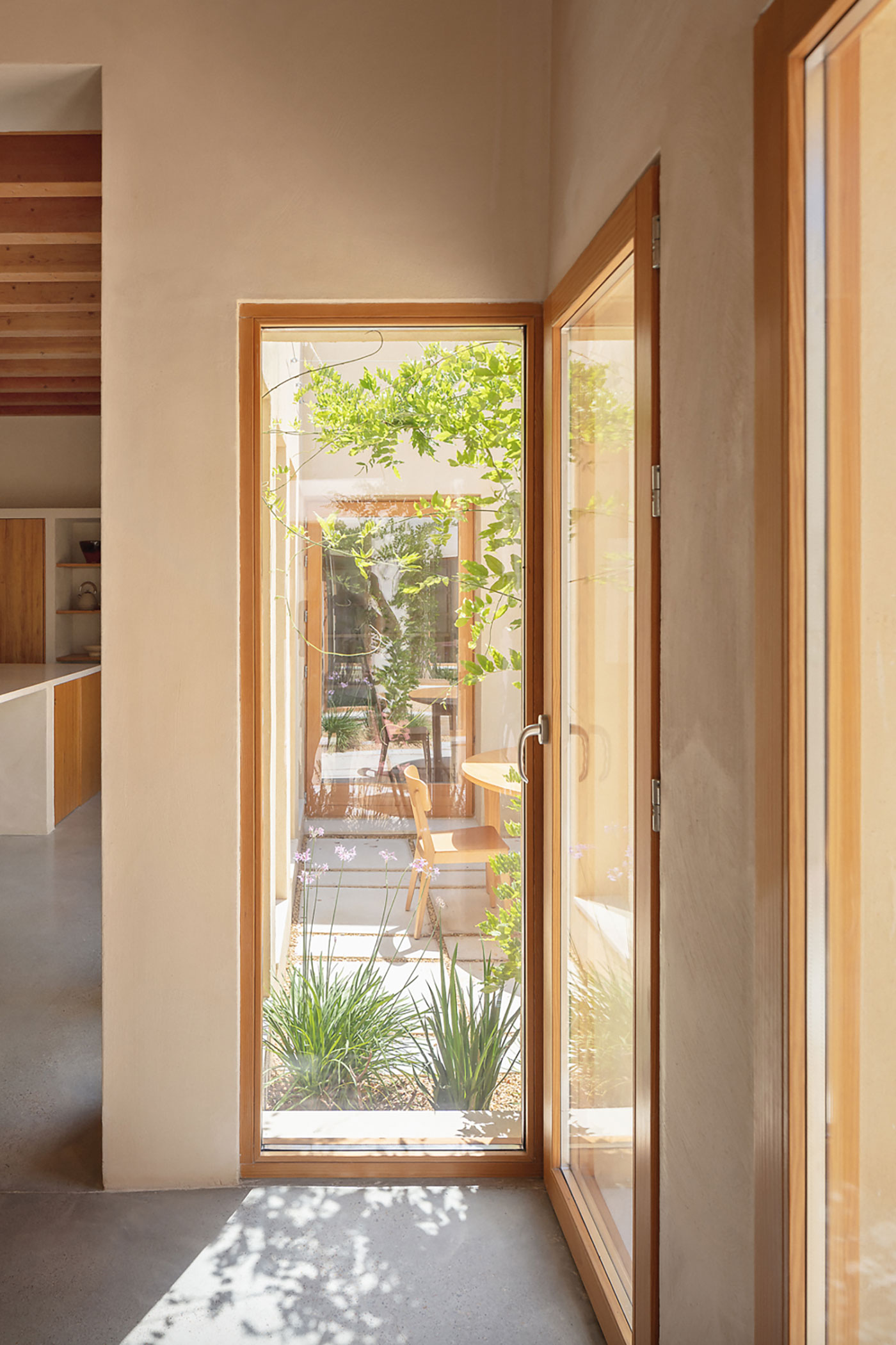 En el centro del patio, el promotor decidió plantar un almez (Celtis australis), árbol emblemático del pueblo y símbolo de la memoria familiar. Su presencia convierte el patio en un pequeño paisaje doméstico donde naturaleza e historia se entrelazan.