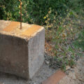 Continuamos el paseo y a la vera de la balsa pronto encontramos otro de los puntos característicos de la intervención, de nuevo geometrías circulares, que en esta ocasión rodean un caño por el que el agua caerá. Y un poco más allá, donde el camino cambia de dirección; en aquel punto en el que mejores vistas tuvimos durante las visitas, un nuevo espacio de estar, un banco mirador sobre el paisaje del Barranc de La Artejuela y los bosques de La Parreta.