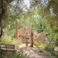 A nuestras espaldas, y de cara al valle, el antiguo lavadero, bordeado por un nuevo pavimento de gres, esta vez con una geometría cuadrada y sin apenas juntas que haga más cómodo y accesible su disfrute. Sobre él una nueva sombra, la que provoca la pérgola que recupera una geometría extinta, cuyos restos se aprecian aún en los muros de la almazara y que nos lleva a pensar que ese espacio estuvo cubierto a dos aguas algún día. Ahora lo volverá a estar pero de ramas, hojas y flores caducas; para dejar pasar el sol en invierno y protegerse de él los días más calurosos.