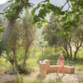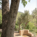 Cerca, un banco mirador entre olivos, construido con el mismo criterio y materialidad que el camino bajo nuestros pies; constituye un espacio de estar que, lejos de sustituir a las viejas sillas que de manera espontánea los habitantes de la aldea han ido dejando marcando los sitios en los que mejor se estaba y con las que nos encontramos en nuestra primera visita, las acompaña.