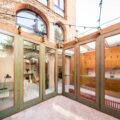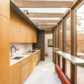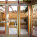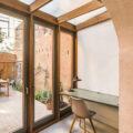 El nuevo volumen se realiza con una estructura de madera y vidrio, como un invernadero, en una ubicación donde, por las sombras del propio edificio y las de los vecinos, nunca hay una gran insolación. Por otra parte, al ser una pieza tan transparente, conseguimos que el resto de la planta baja continúe disfrutando de luz natural.