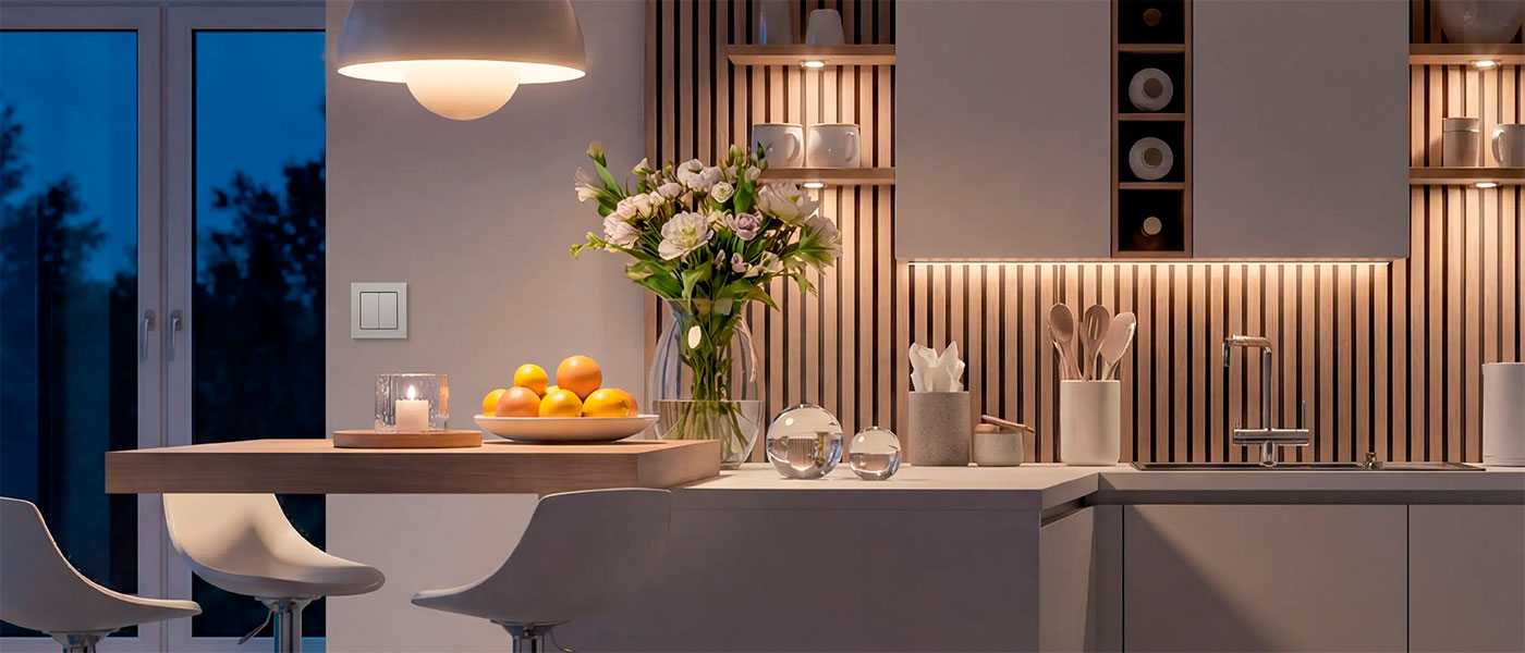 Los actuadores compactos JUNG HOME Pucks gestionan la iluminación y la climatización mientras miden el consumo eléctrico.