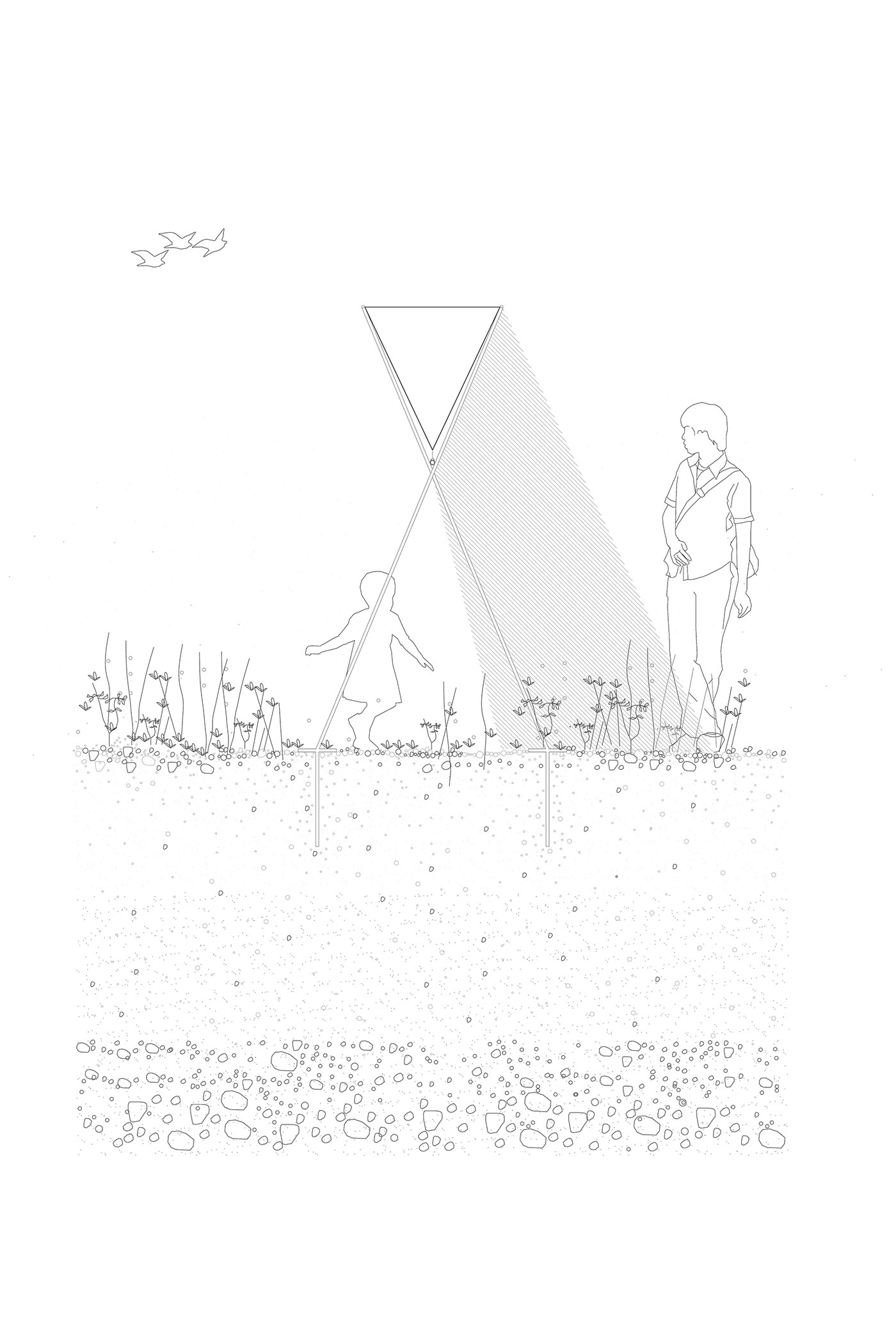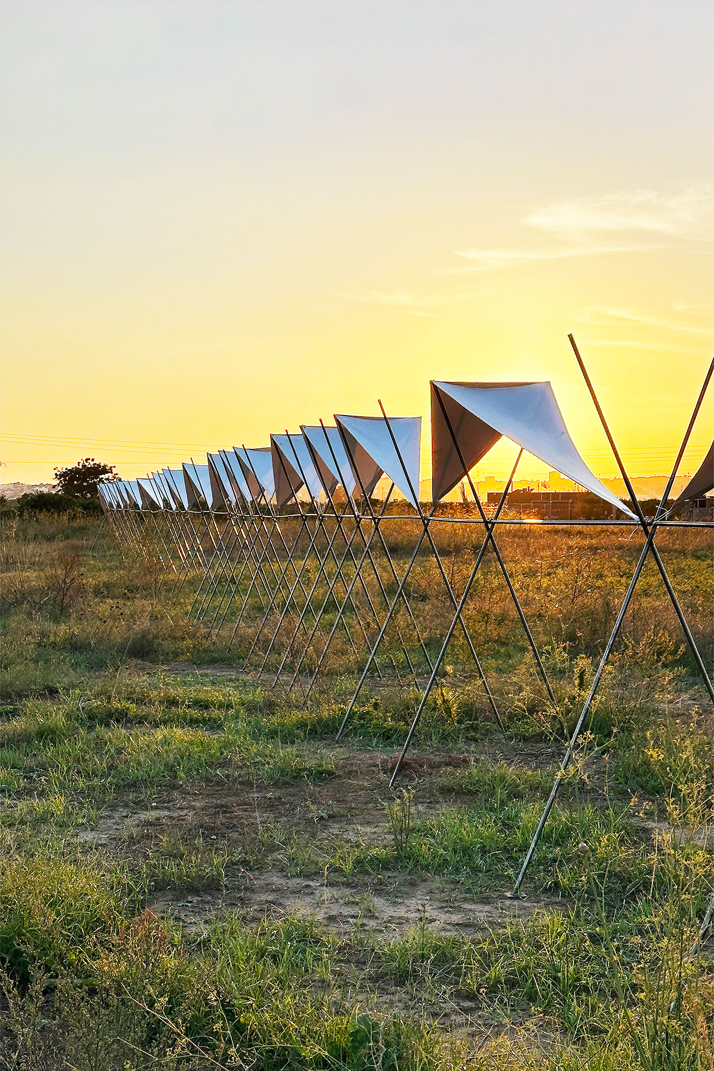 Desde su carácter reversible y su mínima huella ecológica, la instalación plantea un marco de contemplación y relectura del paisaje. Invita a la comunidad a recorrerlo, habitarlo y apropiarse de él desde una mirada renovada. Lejos de imponerse, la intervención acompaña: se funde con los surcos, sigue la dirección del riego, y se deja atravesar por el viento, el sol y el paso del tiempo.