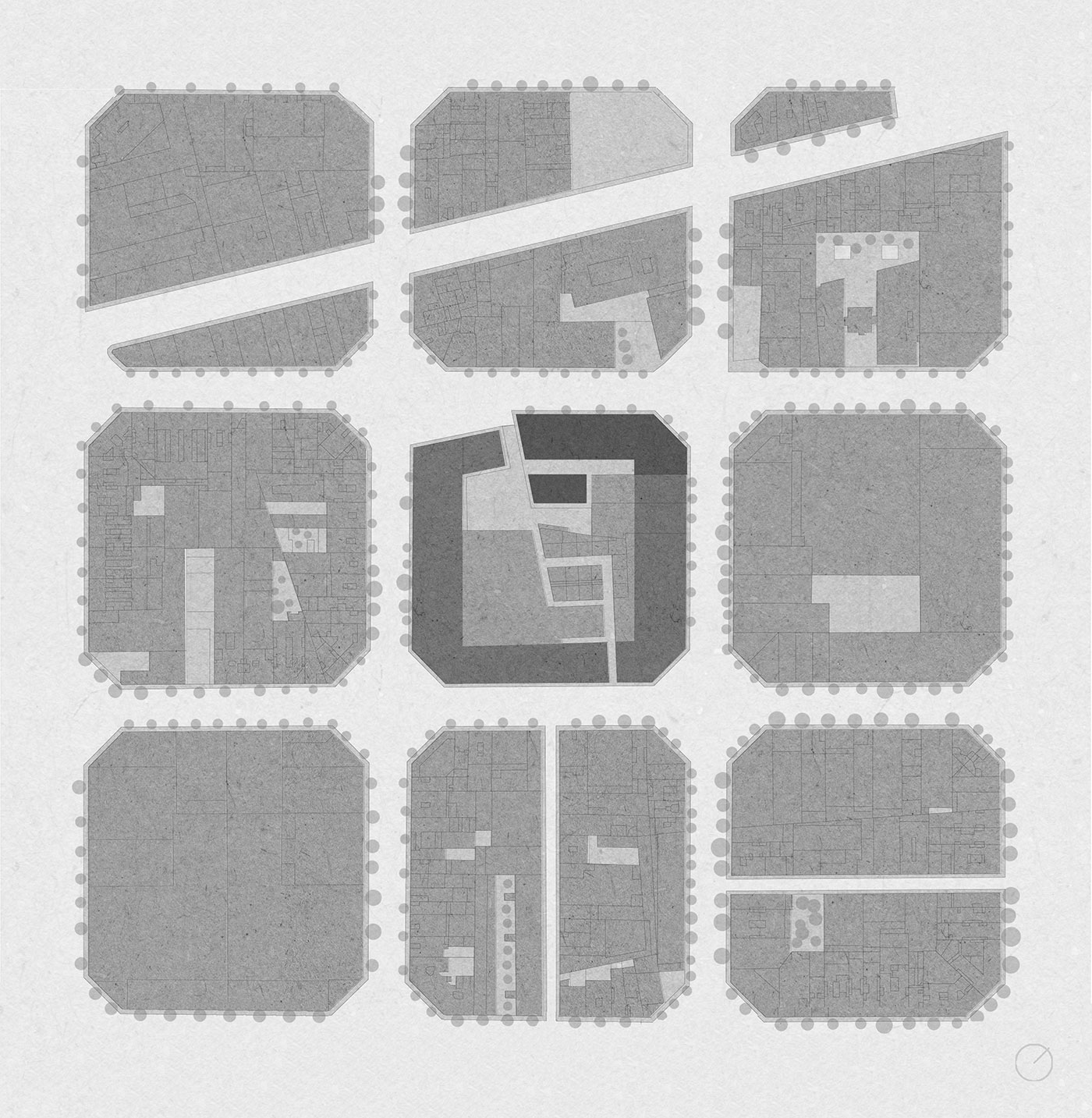 De la intención de mantener la continuidad del tejido urbano nace la decisión de mantener la característica esquina en chaflán del Eixample, que en el Poblenou está desapareciendo poco a poco. Es en ese punto en el que se sitúa el acceso al edificio, mediante un porche que acompaña hasta la entrada al vestíbulo. Un vacío que perfora transversalmente la pieza hasta el interior de manzana.