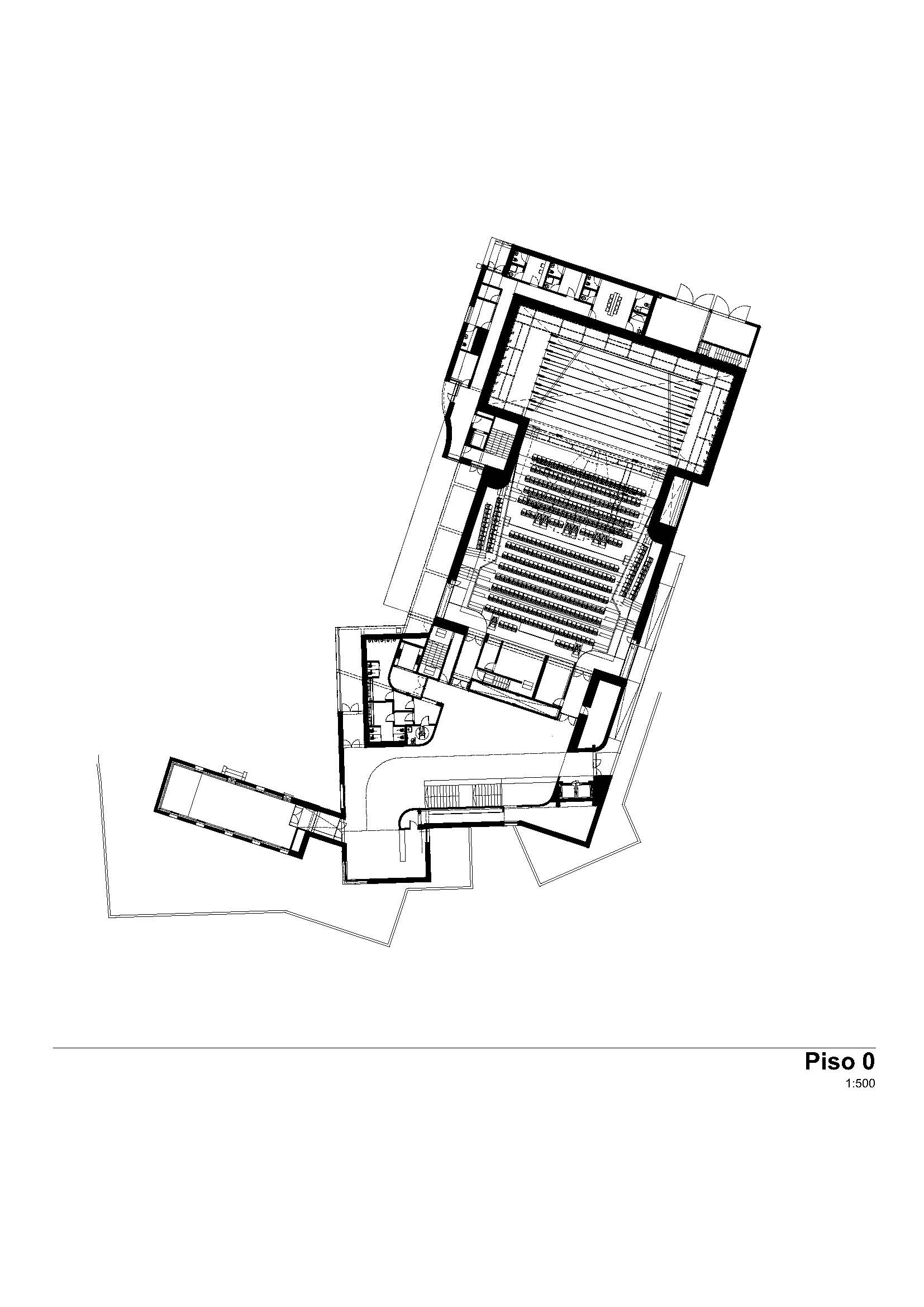 En el nivel 0, planta principal de acceso, se accede directamente al vestíbulo, donde se sitúan la taquilla y los accesos a los dos espacios disponibles: el Auditorio y la Casa da Caturra. Las áreas más privadas incluyen camerinos y el puesto de seguridad de todo el complejo.