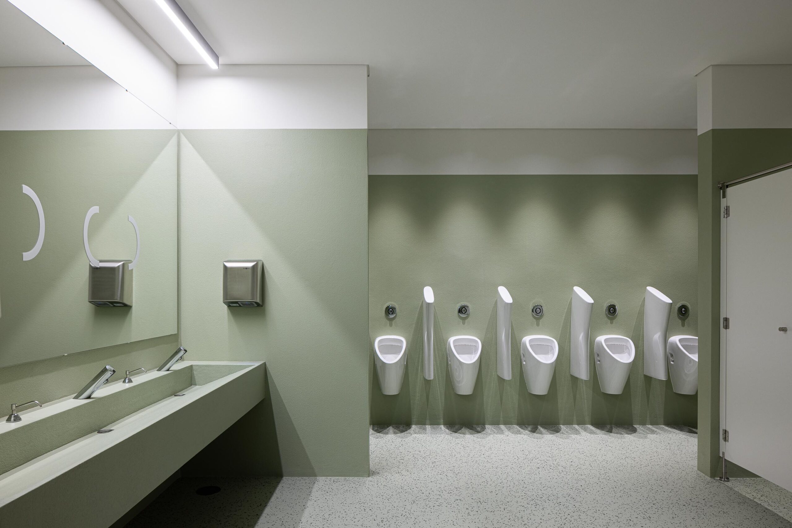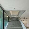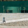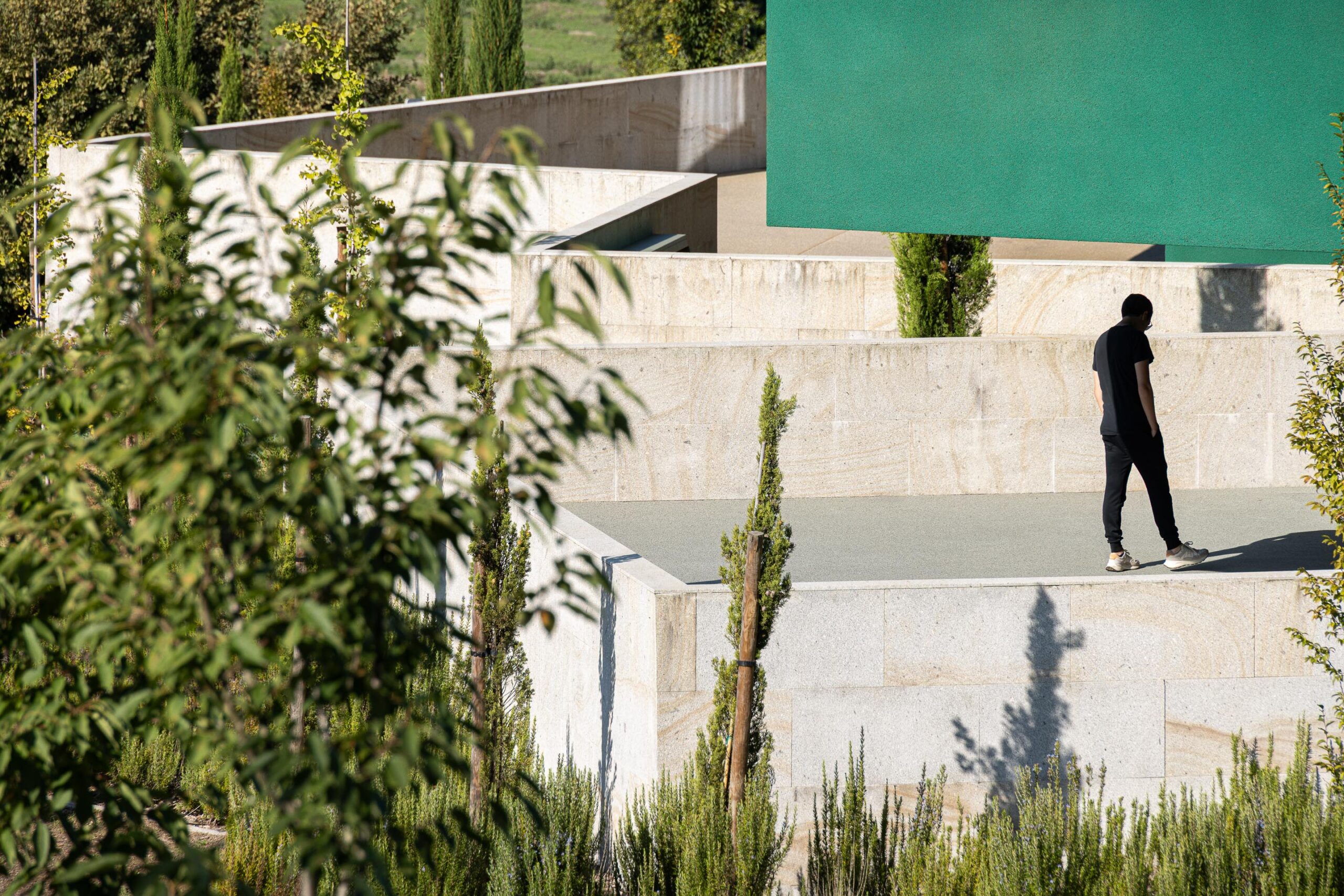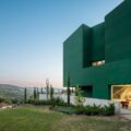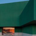 Previendo una presencia volumétrica significativa y considerando el desnivel topográfico, el edificio se oculta entre vegetación plantada y magnolios. La huella de la estructura preexistente permanece, dando paso a nuevas texturas y funciones; sin embargo, destaca la audacia de su color: el verde, que con el tiempo se espera que se funda gradualmente con la vegetación circundante.