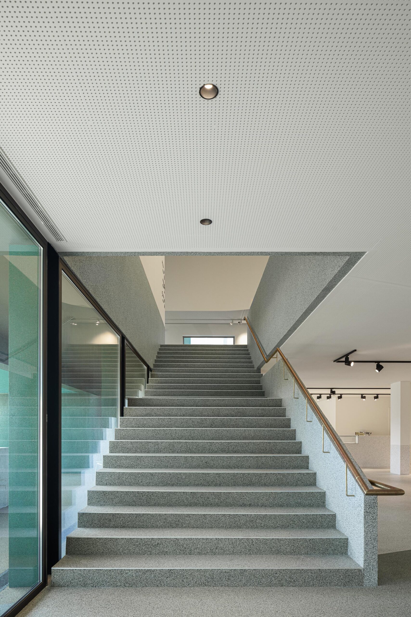 En el nivel -1, los visitantes pueden recorrer el espacio expositivo, acceder a la cafetería y al primer anfiteatro del auditorio, además de disfrutar de una conexión directa con el jardín, el auditorio exterior y el recorrido que conduce al Cavalum.