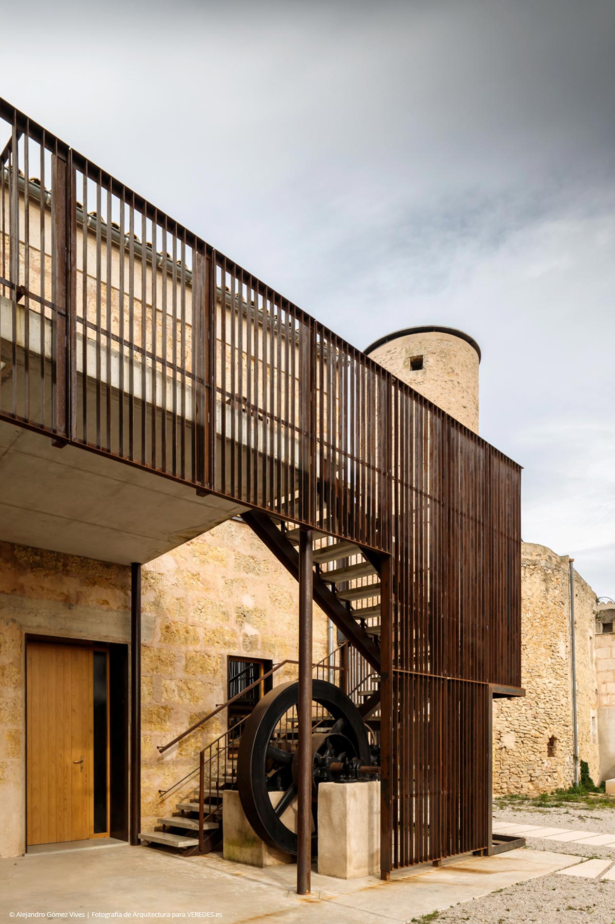 La nueva escalera exterior que permite subir a la sala polivalente de planta piso funciona como mirador del pueblo. Se construye un ascensor para cumplimiento de accesibilidad y se ha sustituido la cubierta de la Farinera. En el ámbito de la plaza, se ha procedido al ajardinamiento, peatonalización, así como la implantación de un pequeño escenario para la realización de actos.