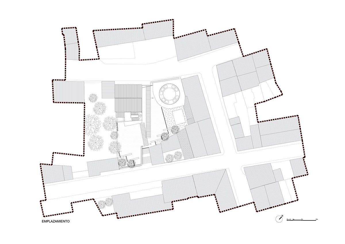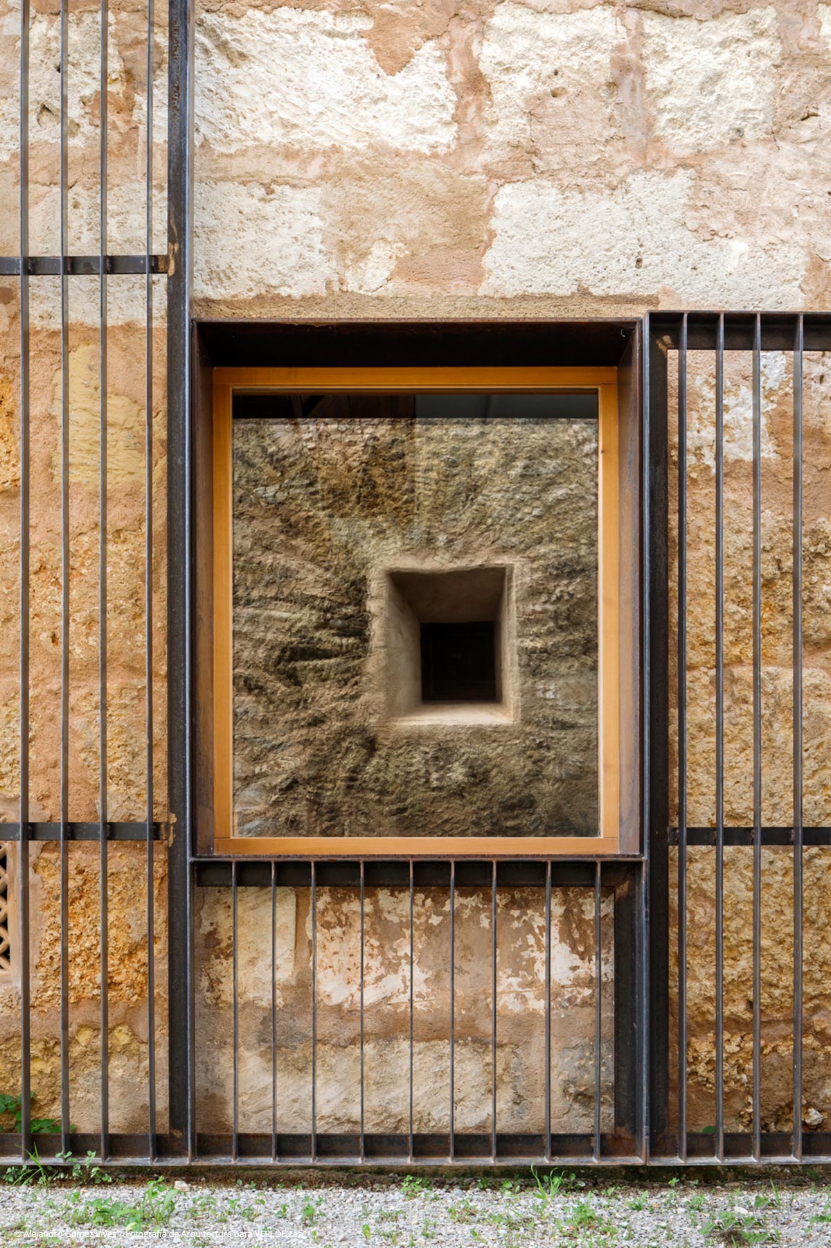 Este elemento lamado de acero tan característico, tiene la particularidad de densificarse desde el interior de la plaza, y volverse transparente para mostrar la construcción de marés de 1900, desde la calle. De esta manera, se respeta el carácter de la construcción existente desde el exterior de este ámbito y no se distorsiona la apariencia original de esta zona del municipio.