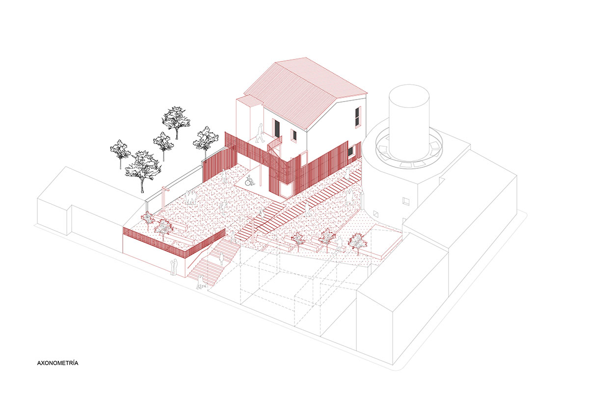 La propuesta consiste en una actuación urbana, generando un nuevo espacio urbano semipúblico en el municipio. El proyecto resultante es una nueva plaza para Llubí donde se han colocado unas nuevas conexiones verticales en el exterior para conseguir el mayor espacio libre en el interior de la Farinera.