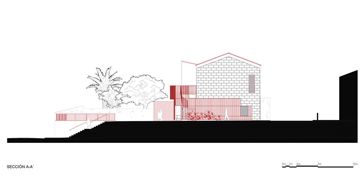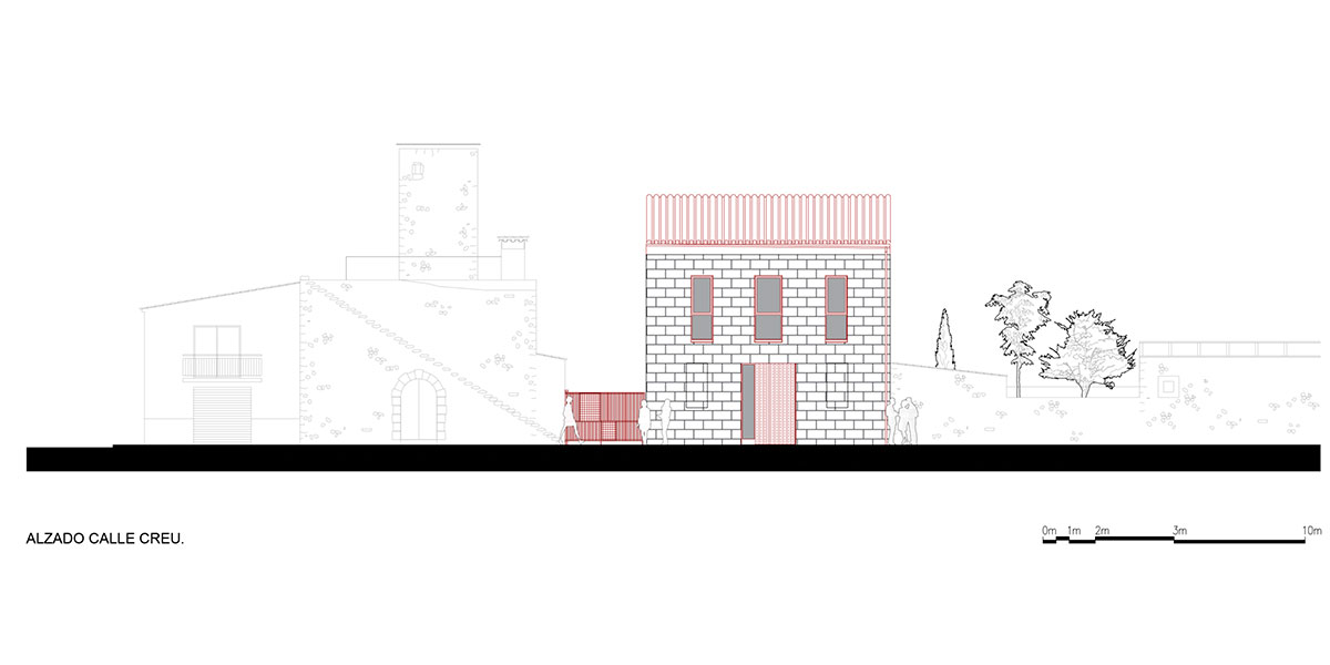 La supresión de esta antigua conexión en ruinas, no solo consigue un nuevo acceso a este lugar si no que enfatiza el edificio patrimonial, el molí de Can Suau, adquiriendo el protagonismo que le corresponde.