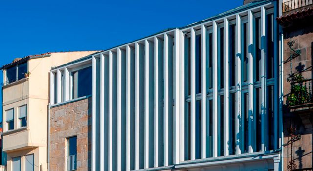 La universidad de Vigo, cuyo campus principal se encuentra a 10km del centro urbano, propone la rehabilitación de tres construcciones en el casco histórico con el fin de acercar su actividad al resto de la sociedad. Un volumen de madera se apoya en los soportales de piedra existentes. Una caja dentro de otra; madera y … Sigue leyendo Sede Institucional y de I+D+i de la Universidad de Vigo | Abalo Alonso Arquitectos