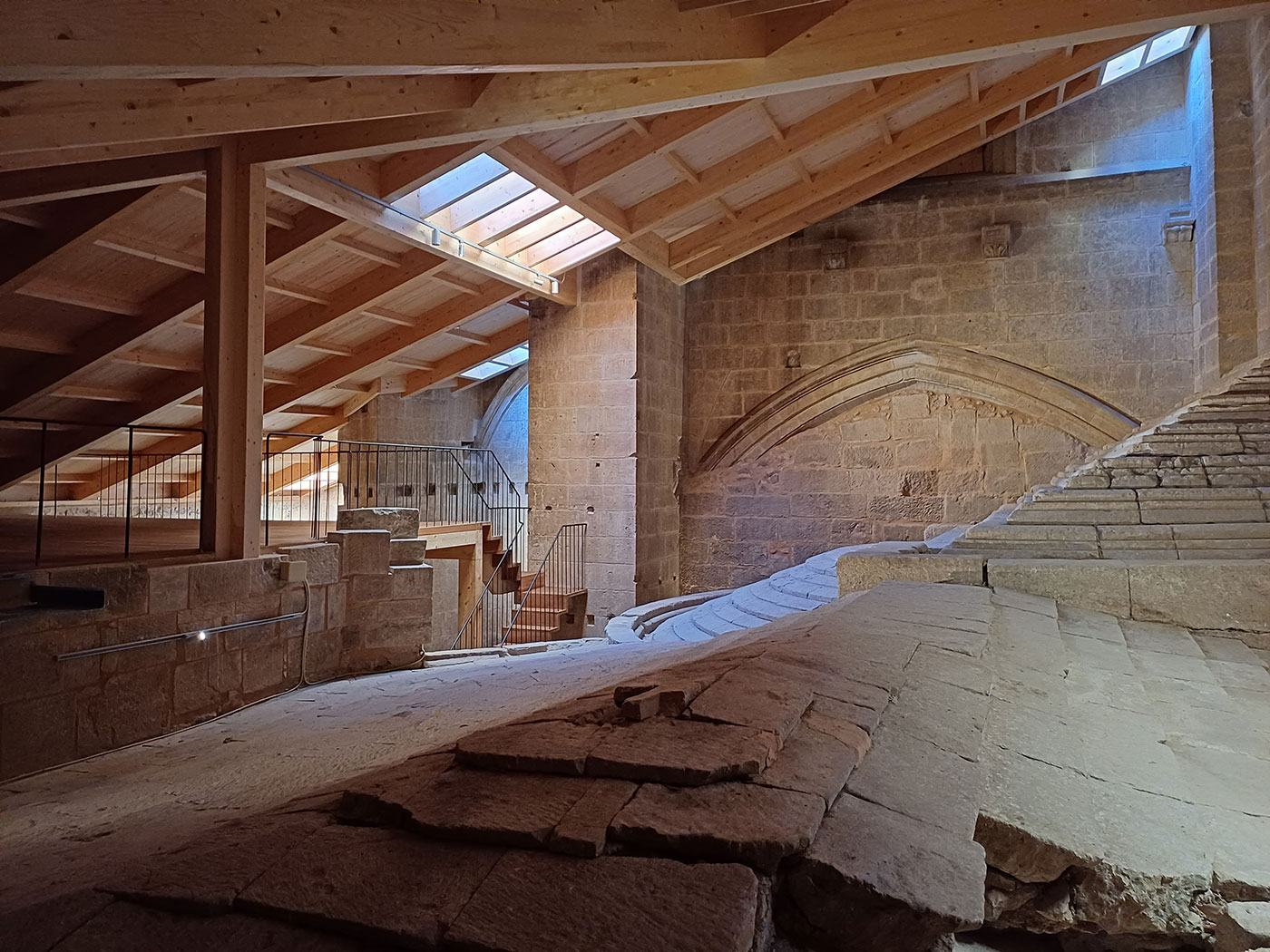 La intervención aseguró la estabilidad y estanqueidad de la cubierta y la puesta en valor del conjunto, de manera que permite la visita turística para redescubrir la riqueza histórica del edificio. Para ello se planteó una nueva solución constructiva que mantuvo la geometría exterior original de la envolvente pero en la que se despejó el espacio situado bajo la misma potenciando la contemplación de las cubiertas originales de piedra de la catedral románica.