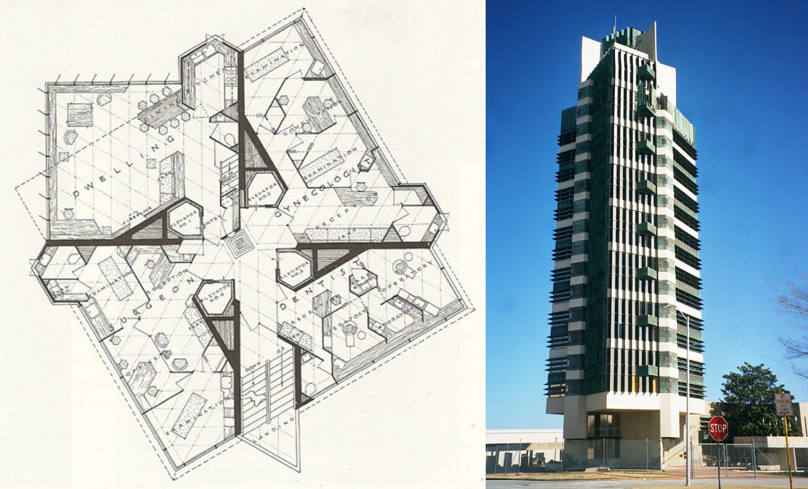 Uno de los ejemplos que Oiza tuvo siempre en mente al diseñar Torres Blancas fue la Price Tower de Wright, a la que supera.